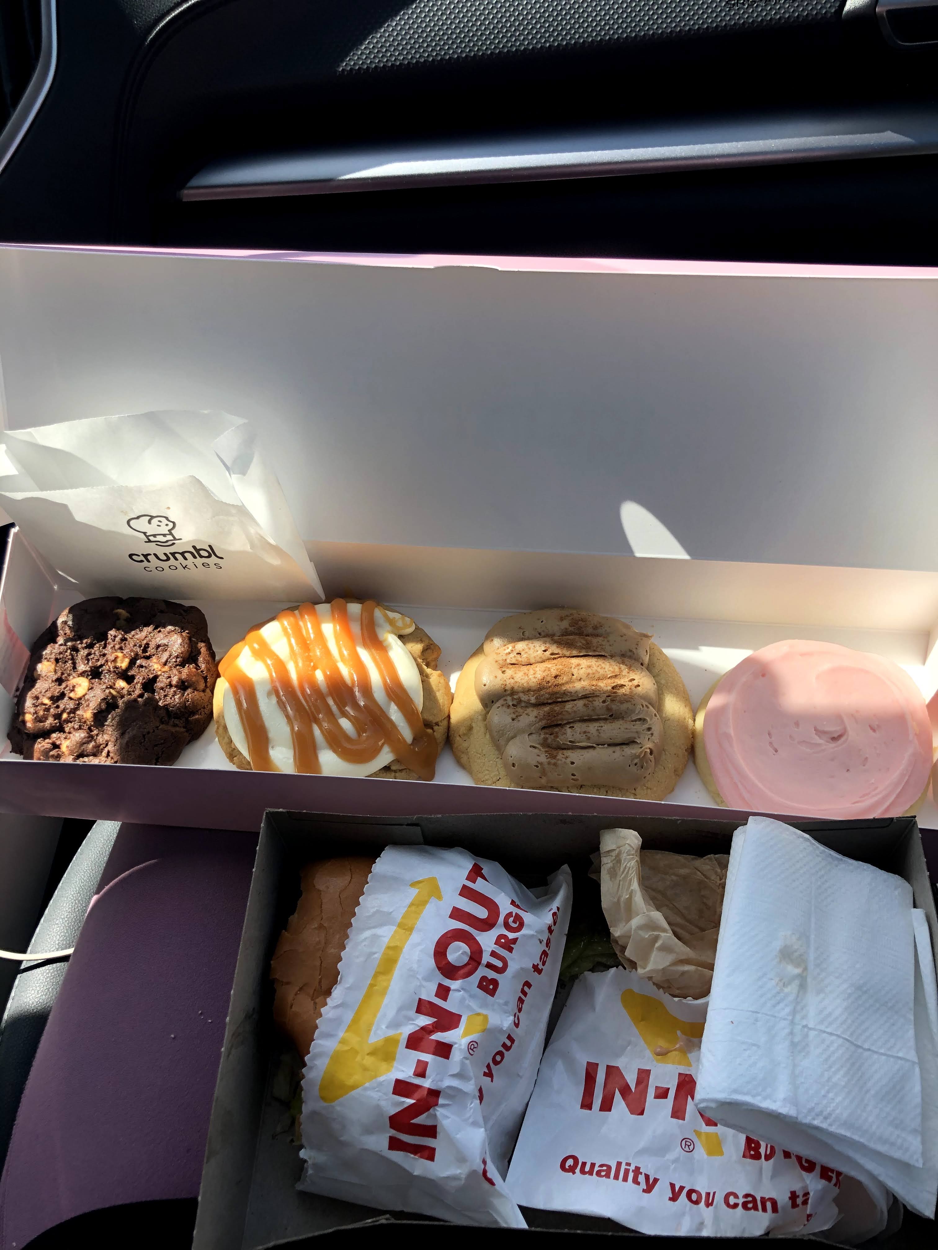 Thursday we left for California, I had set my alarm for 3:10 and thought kyle did too. I must have woke up and turned mine off but somehow Kyle woke up at 3:30 and we quickly got ready and out the door. I texted Mitch to see if he had headed off to work yet and he hadn’t so he picked us up so we wouldn’t have to park the car. Quick made it through TSA and it was time for our first plane. We had a quick flight to Minneapolis and then had a 3 hour layover until our 3.5 hour flight to San Diego. We flew in and Kyle was carsick so that wasn’t good, We got our rental car and then went to find some food. We found an In-n-out and got burgers and shakes. We also went to Crumbl cookies which i had heard of on social media and they were massive delicious cookies.