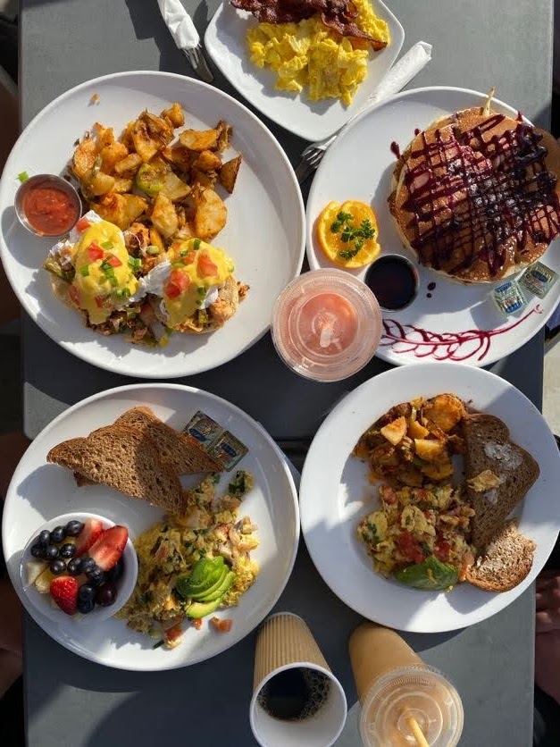 With the time change we were all up early so we just got moving and went to check out the ocean. It was so amazing and there were tons of surfers. We walked up and down the pier and by the ocean. We then went to look for breakfast, we had seen this place Swami’s Cafe and had heard good things about it and so we checked it out…. It was AMAZING. So amazing we went back the next day. We all got smoothies, kyle and I shared berry pancakes, eggs & bacon, THe other boys got California & Farmers scrambles, & Anna got Lobster benedict. Emily messaged me about getting together so she met us at