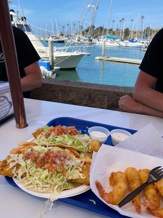 The next morning we all slept in a little better and were pretty slow, we decided to eat at Swami’s Cafe again and we all tried different things and got smoothies again. After we were done we went back to the condo and packed up to go to a different beach down the road called Harbor Beach. It was a bigger beach and not quite as pretty, it had some rock walls that people were fishing off of, we dug in the sand and just talked, relaxed and went for walks. When it was lunch time we headed to Harbor Fish & Chips which we had heard was really good and it did NOT disappoint. It tasted so good and man the fresh shrimp was so much better than we have ever had. We got ice cream at a little local shop before heading in the car and going back to the condo.