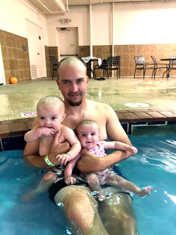 After we were done with the zoo we headed to the hotel so we could go swimming. We love the pool because it is little and easy to watch the kids but has a big slide for them and a small little one, things to play with in the water, and a great shallow end to sit with babies. We just order caseys pizza and relax in a room. In the morning we eat breakfast and then swim some more before taking our time to pack up and head to Texas Roadhouse and some places to shop.