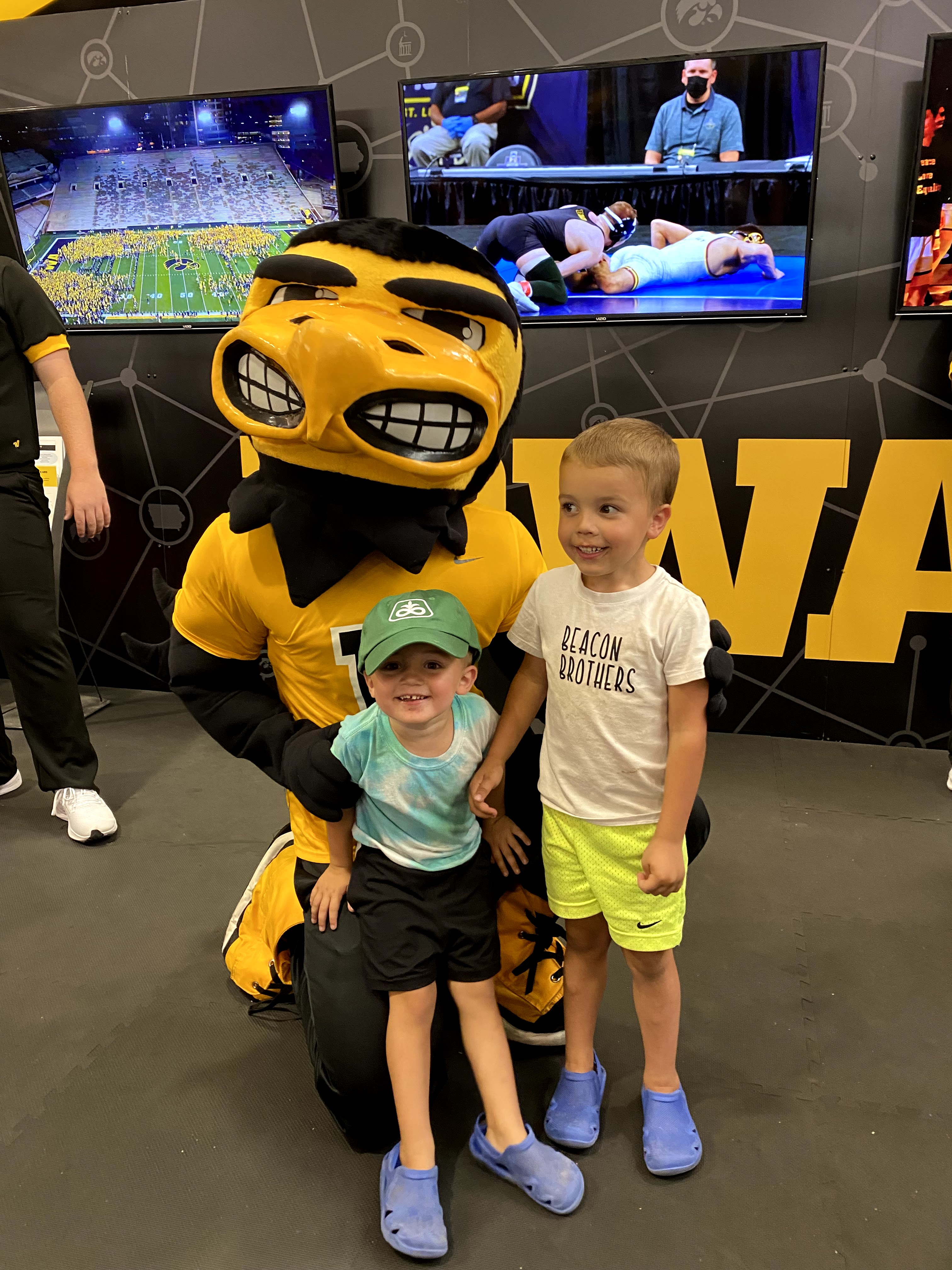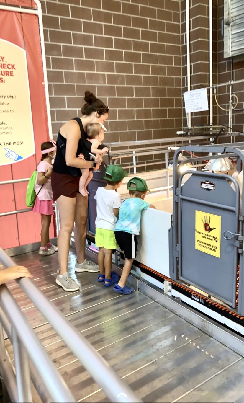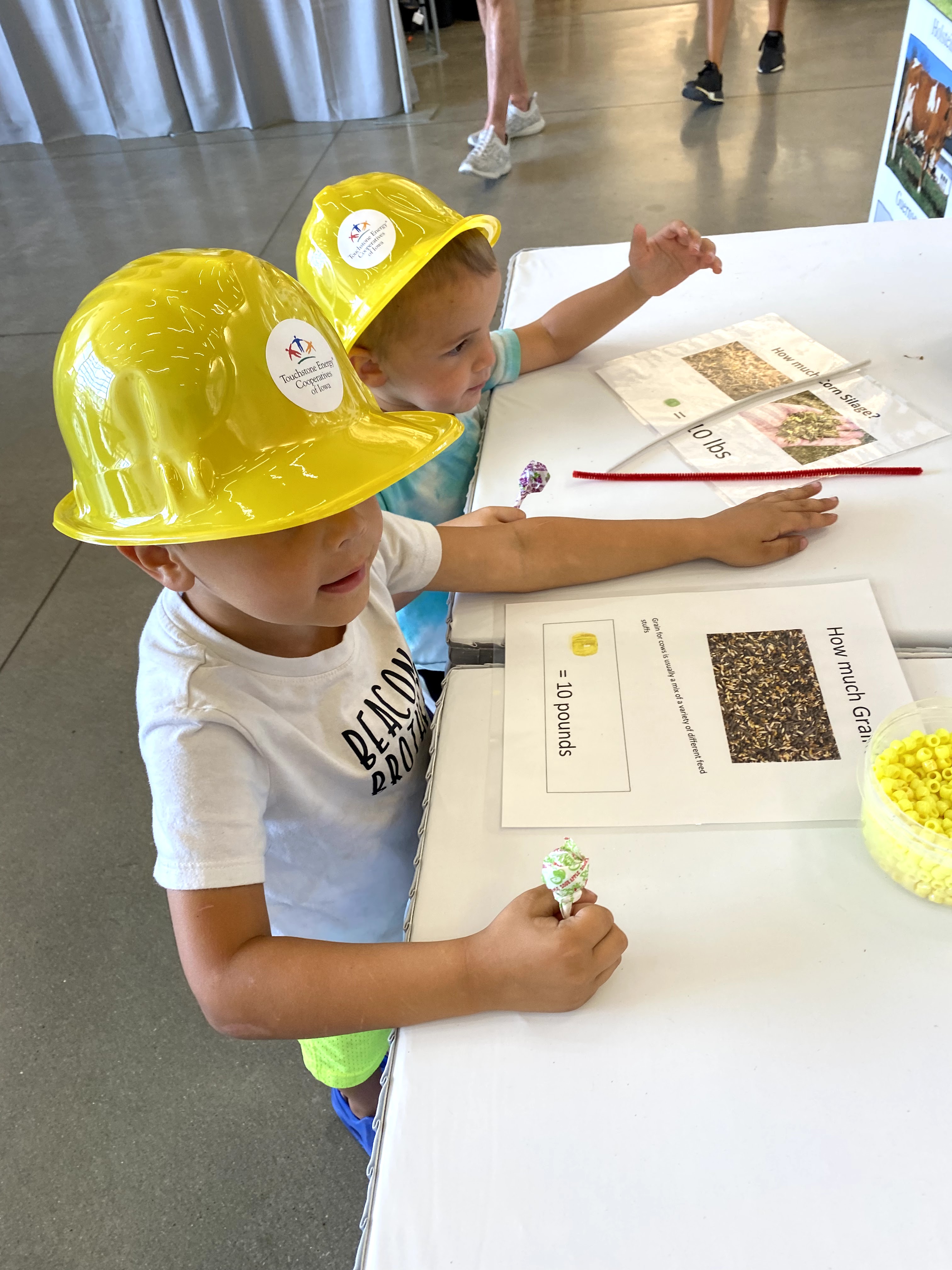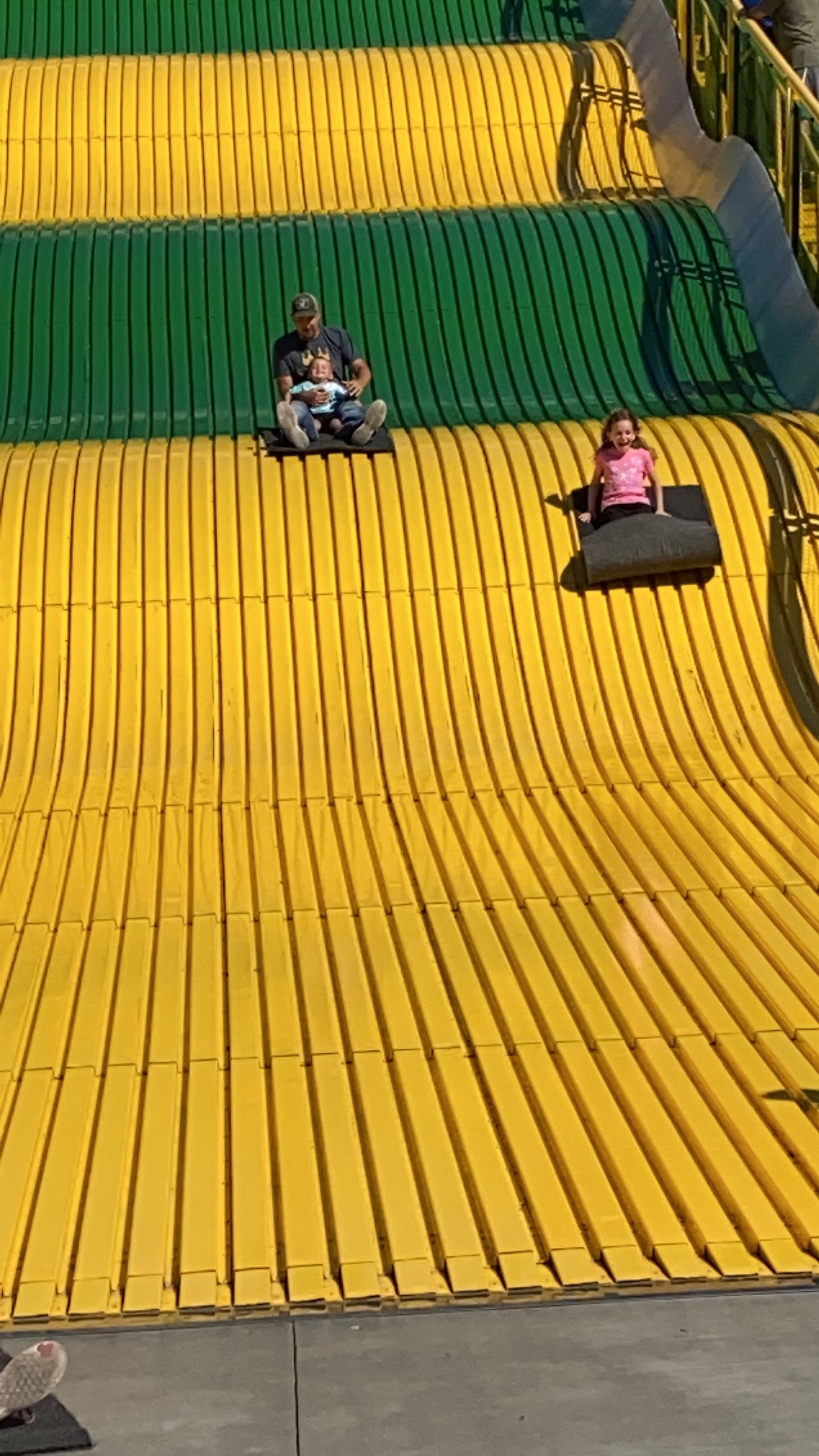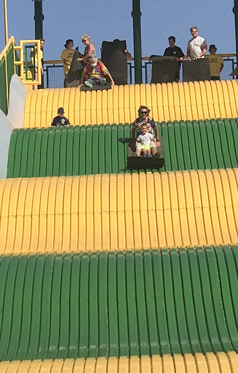 The kids loved all the baby animals, Betsey loved being carried so she could be in the middle of it all. From there we went to a horse show with the Collins where they shoot at balloons from the horse and Duke was a big fan. We then went to the Giant Slide and walked checking things out. The boys and I really enjoyed the 4H building where we got to do a fun activity about Dairy cows with ISU Extension office and do some working exhibits. We couldn’t get nosy Betsey to fall asleep so we went to the kids zone and let the boys play and they watched a little bit of a show, I snuck to see the agriculture building to see all the flowers and the vegetables.