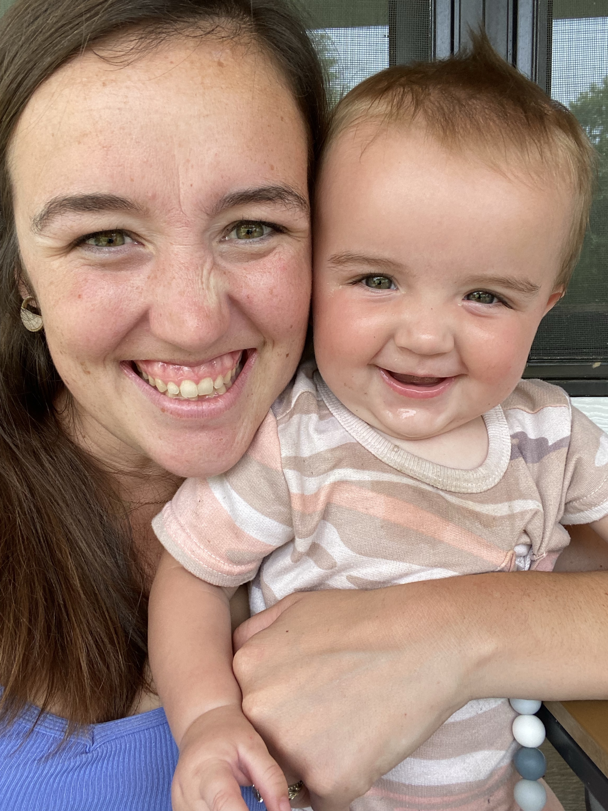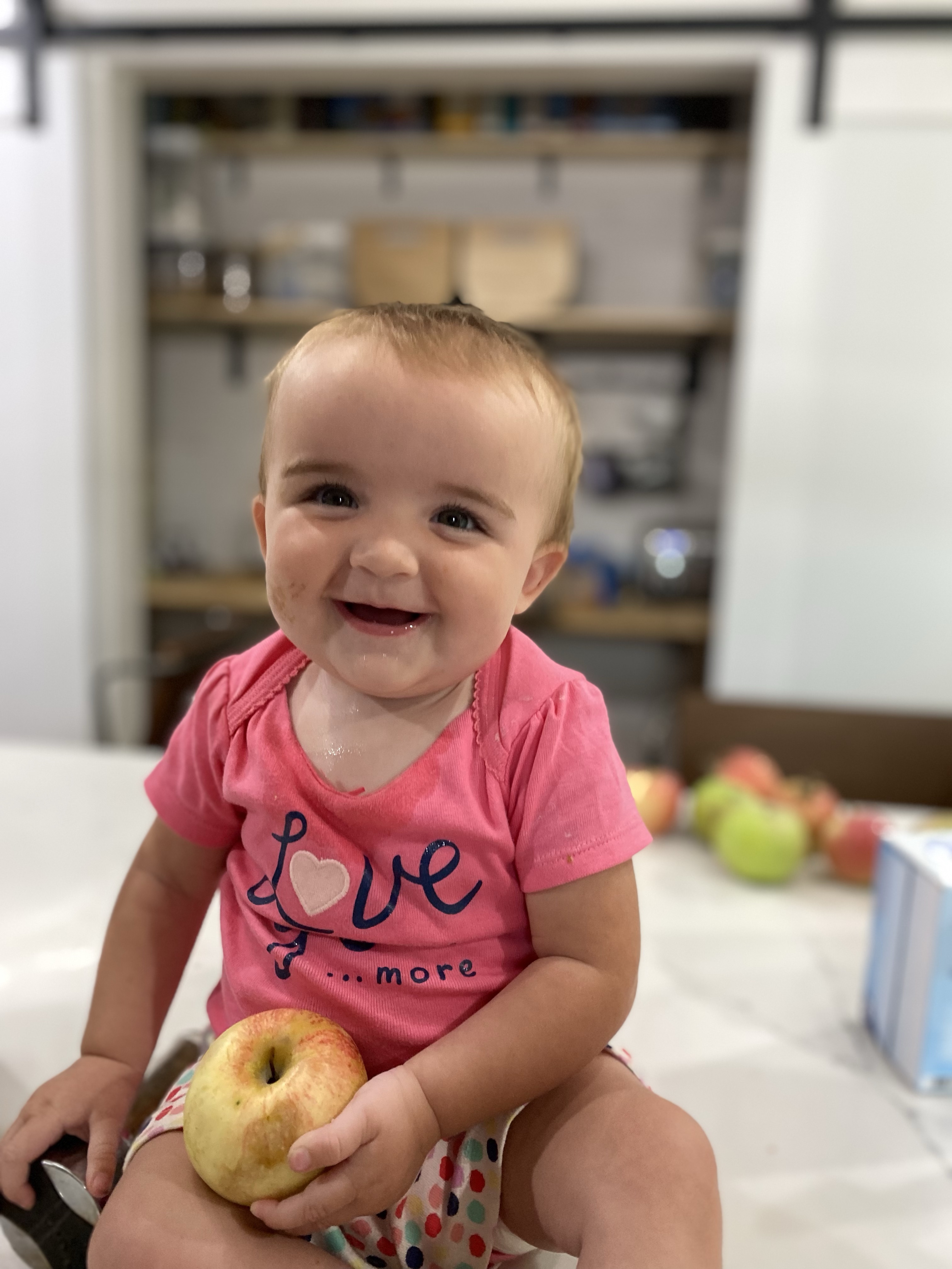 Eating – eat absolutely everything and anything we will give you. You LOVE our ice cream cones, blueberries, yogurt, toast, pretty much anything. however you do not like cottage cheese, already think you are too big for baby food, Got 3 teeth in one day… poor girl! but man does that make her ready for eating food and using them!
