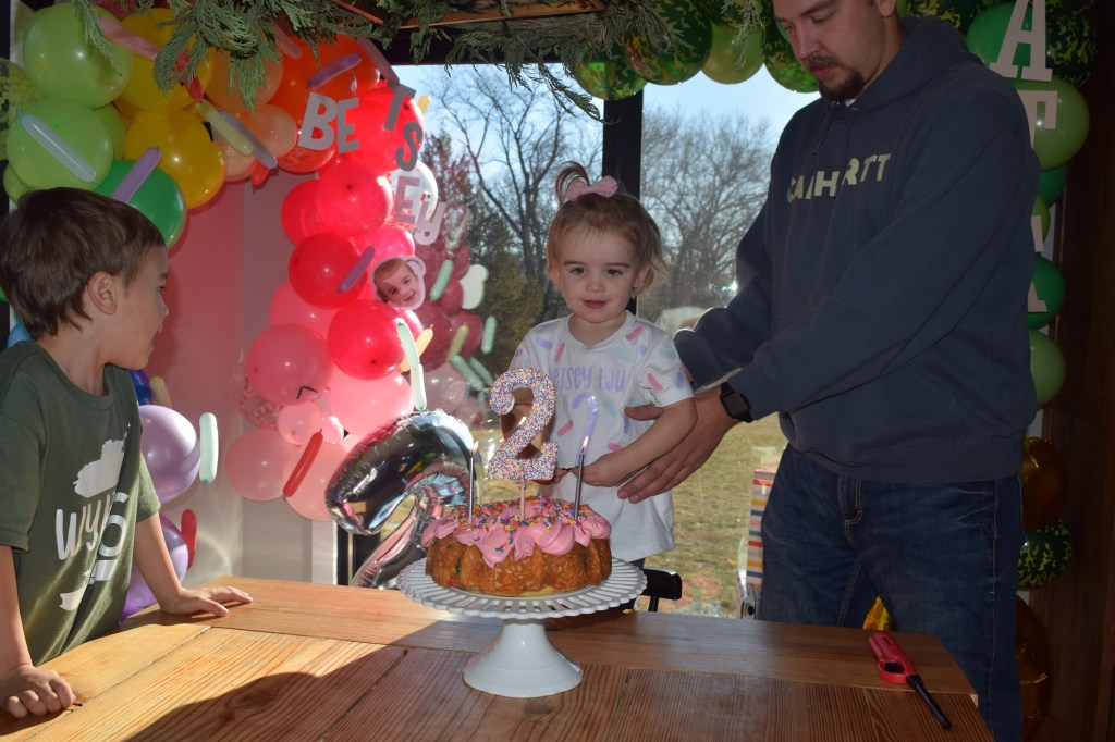 On December 18 after the church Christmas program, we had a birthday party at our house for Wyatt turning 6 and Betsey turning 2. Nana/Papa, Mitch/Nat, Cody/Morgan/Paisley, Gigi Fopma and Grammy/Doug came to celebrate. Daddy smoked pulled pork, there was potatoes, Dutch mess, corn, snicker salad, and grammy made homemade ice cream. Nana made Wyatt’s tank cake and I made Betseys sprinkle donut cake. Both kiddos got to open their presents and were spoiled as always.