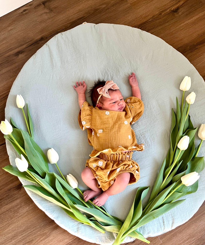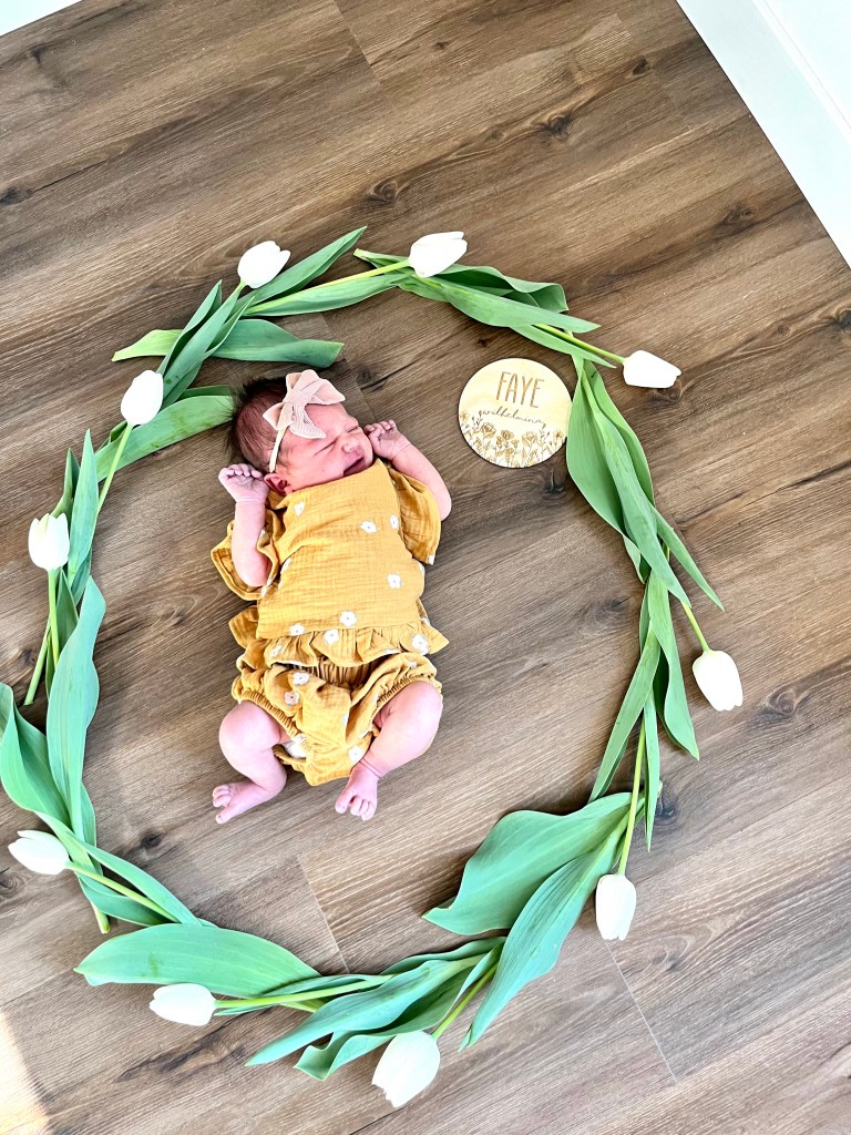 Once again too cheap/lazy to get real newborn pictures. Faye wanted to be awake her whole pictures which i swear all my kids always do. It was so fun to have a spring baby and have a floral outside, cut fresh tulips, and just have spring inspiration photos!