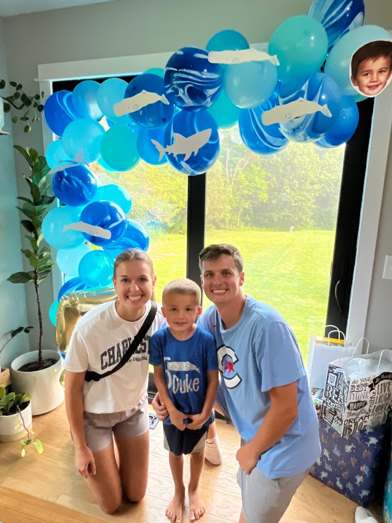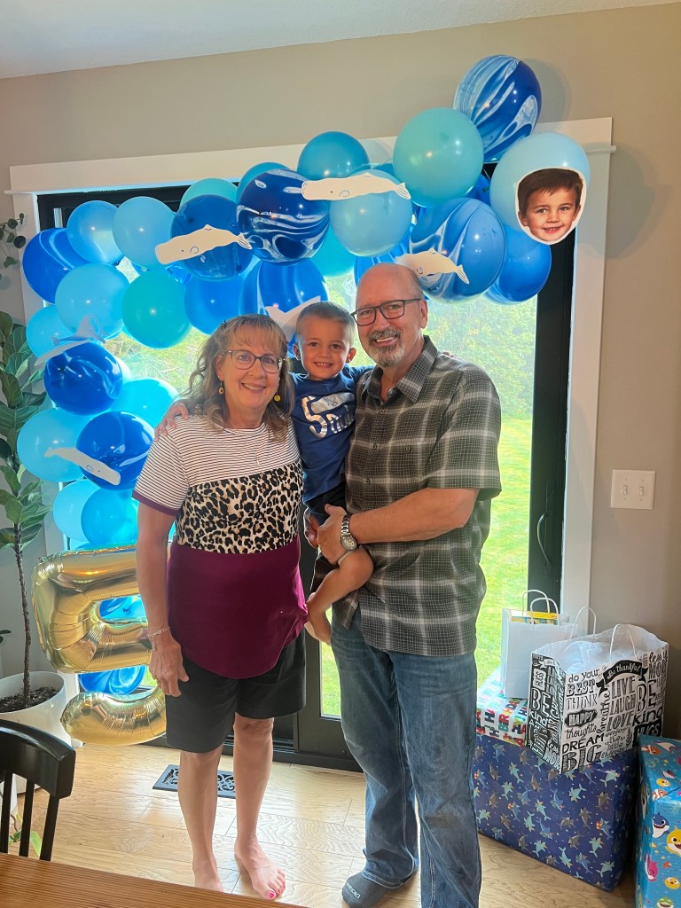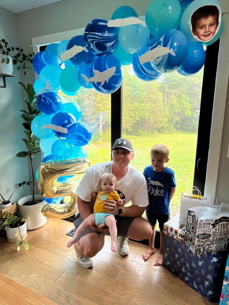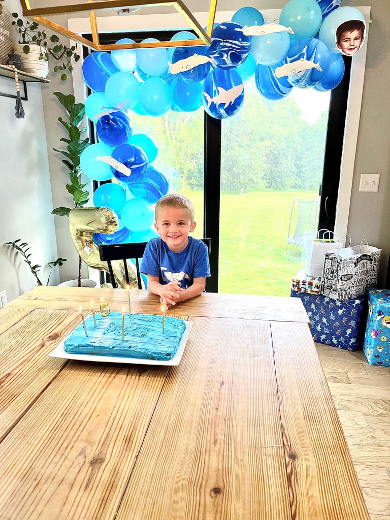 We started the fun with making a balloon arch with some awesome tie dye balloons we had found at walmart that kind of looked like water! You helped mom make your cake, we did a fun little charcuterie candy board. We had fmaily that could make it over on Saturday night for pizza and ice cream.
