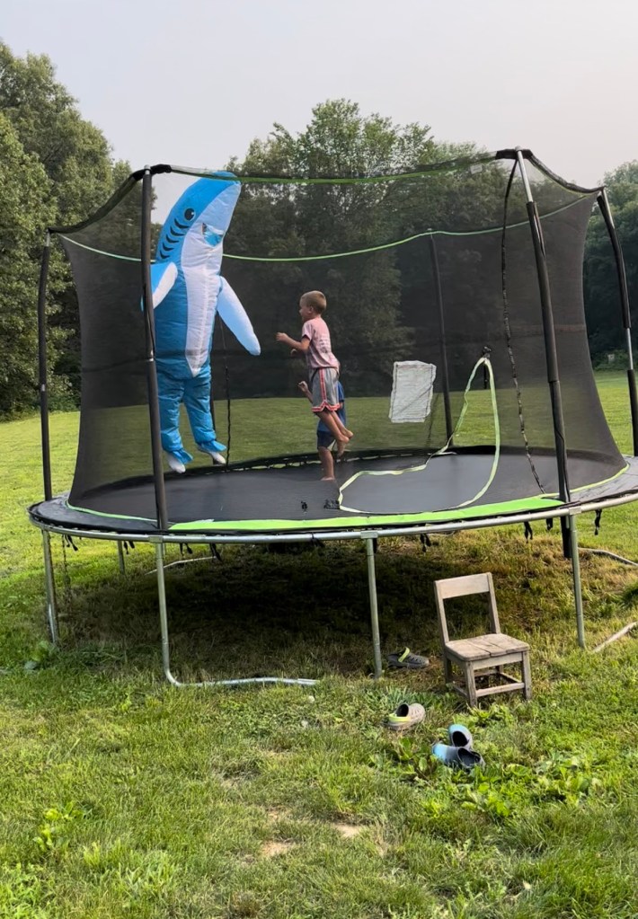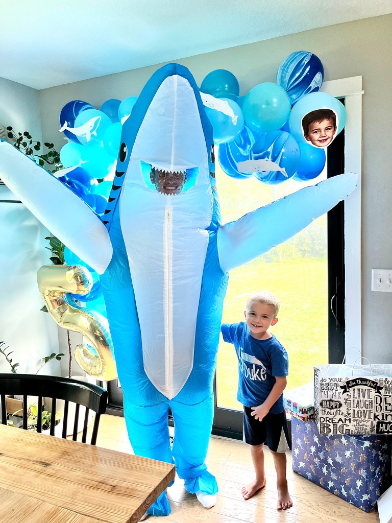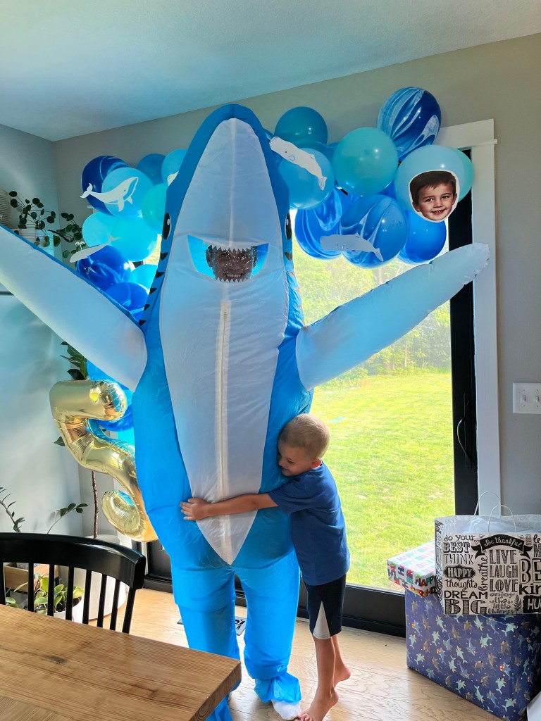 Uncle Mitch is awesome and showed up to the party in a blow up shark costume. you absolutely loved it and had so much fun hitting him and jumping on the trampoline with it. Paisley came in a whale shirt too!