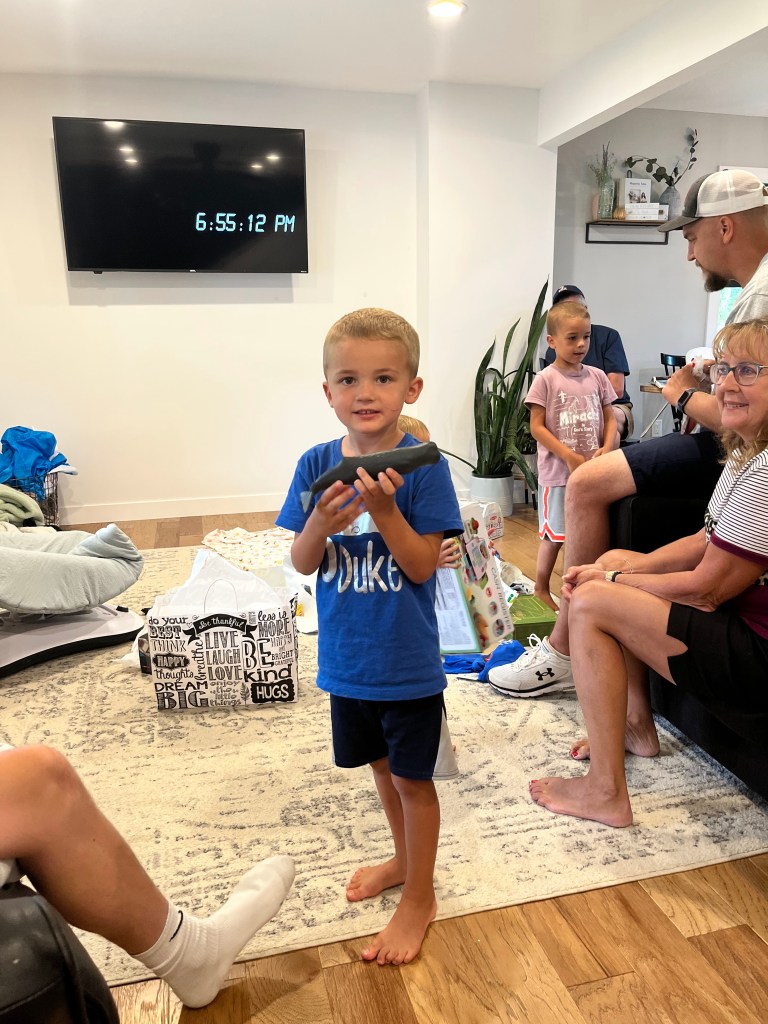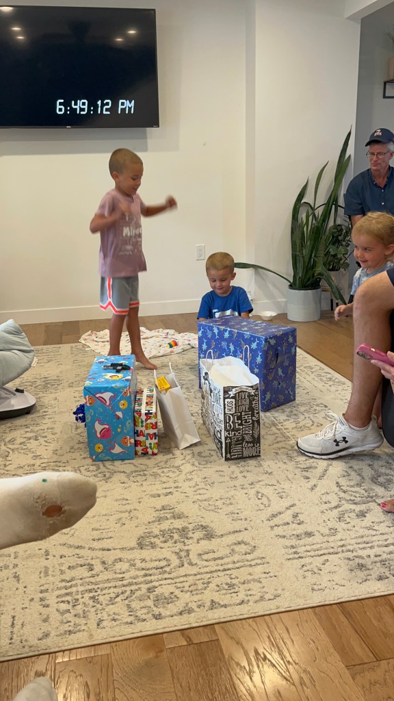 You were spoiled rotten as always and got so many great gifts you loved. A sperm whale stuffy animal you named Whaly. Grammy got you a sperm whale and two giant squids, a underwater sticker book, Uncle mitch got a Kiwi crate that was a rocket launcher which made you and Wyatt pumped. Nana got you a cash register which you all love and we got you a melissa and doug ice cream shop because of how much you always loved the one at Aunt Heather’s.
