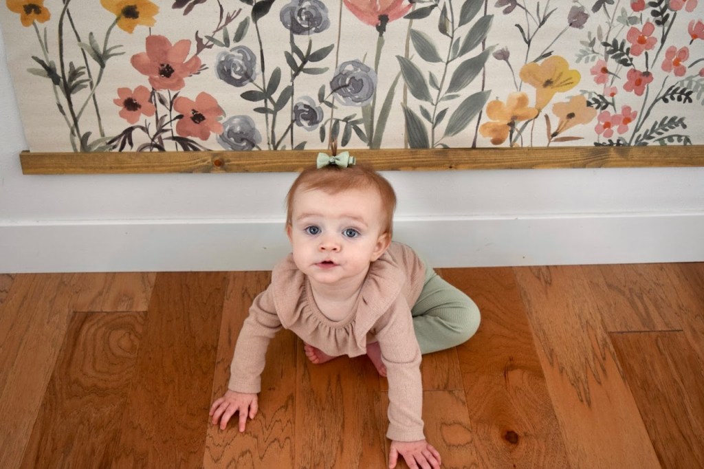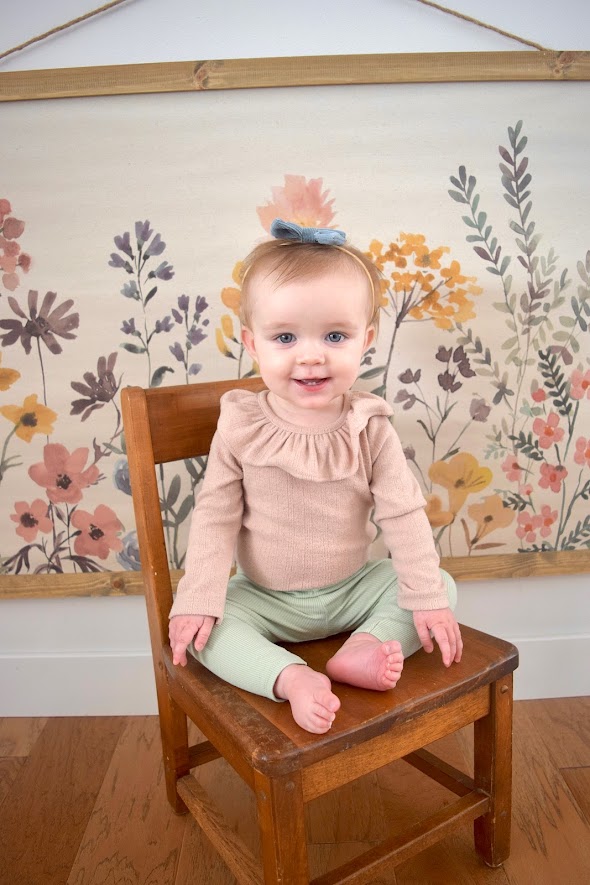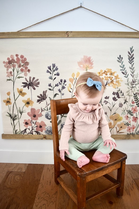 Girlfriend I got you this cute canvas for your room that i was refreshing and you were around 9 months and it was a COLD January Day where we couldnt go anything….and randomly this popped in my head and 5 minutes later we were doing it 🙂 Just how i have always rolled…. have an overwhelming it must be done NOW urge!! You killed it – lighting could have been better but oh well! We love watching you grow and change and the joy on your face