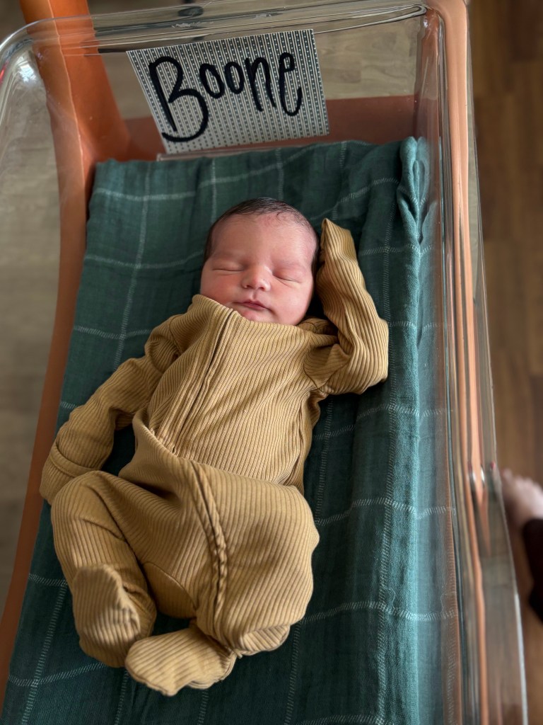 Grammy took the kids to church and in children’s message Wyatt asked the Pastor to pray for his mom in the hospital so that got the rumor mill rolling FAST 🙂 We were ecstatic to tell everyone of your arrival the only problem was…. we didn’t have a name. We were between two, so for your first 24 hours you were nameless. Which meant the suggestions for names came ROLLING in! Dad finally caved and let mom name you Boone and he picked the middle name Stephen.